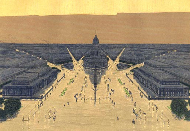 El centro estaba acentuado por el Palacio Cívico, el cual iba a ser destinado a ser el centro del gobierno, con una arquitectura monumental, coronado por una enorme cúpula ( más alta que cualquier edificio de la época) y elementos griegos, simbolizando el poder y la unidad del gobierno cívico.